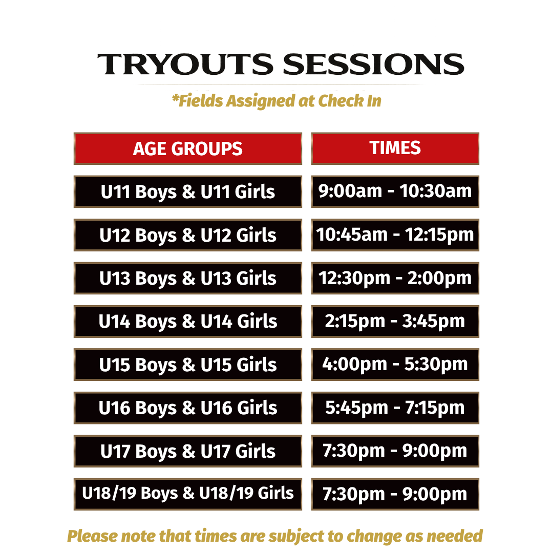 2026/27 NEW AGE GROUPS 2026/27 NEW AGE GROUPS TRYOUT ABSENTEE FORM TRYOUT ABSENTEE FORM TRAINING CAMP INFORMATION TRAINING CAMP INFORMATION FINANCIAL AID FINANCIAL AID VOLUNTEER: DAY 1 - COMING SOON VOLUNTEER: DAY 1 - COMING SOON VOLUNTEER: DAY 2 - COMING SOON VOLUNTEER: DAY 2 - COMING SOON
